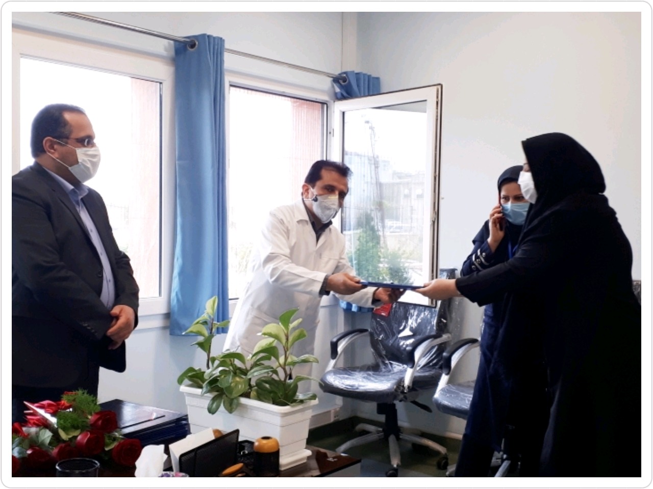 دکتر معصومی: از جامعه ایثارگران بیمارستان که 6 نفر فرزند معزز شهید و 2 نفر جانباز هستند که در حال حاضر مشغول به خدمت در این مرکز می باشند با اهداء لوح تقدیر ، تجلیل کرد.